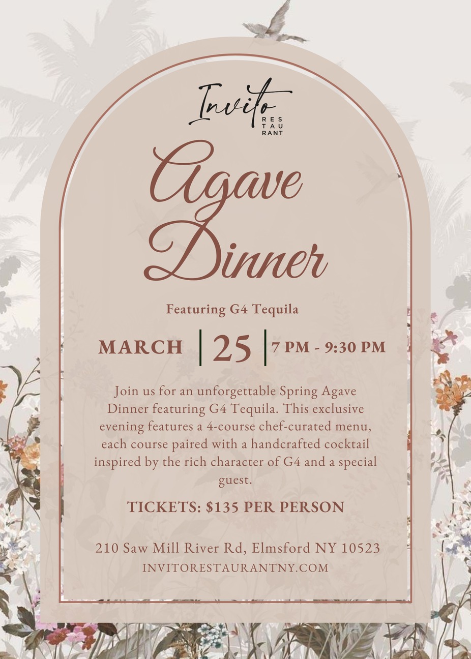 Join us at Invito Restaurant for a special evening celebrating G4 Tequila through a unique culinary experience.