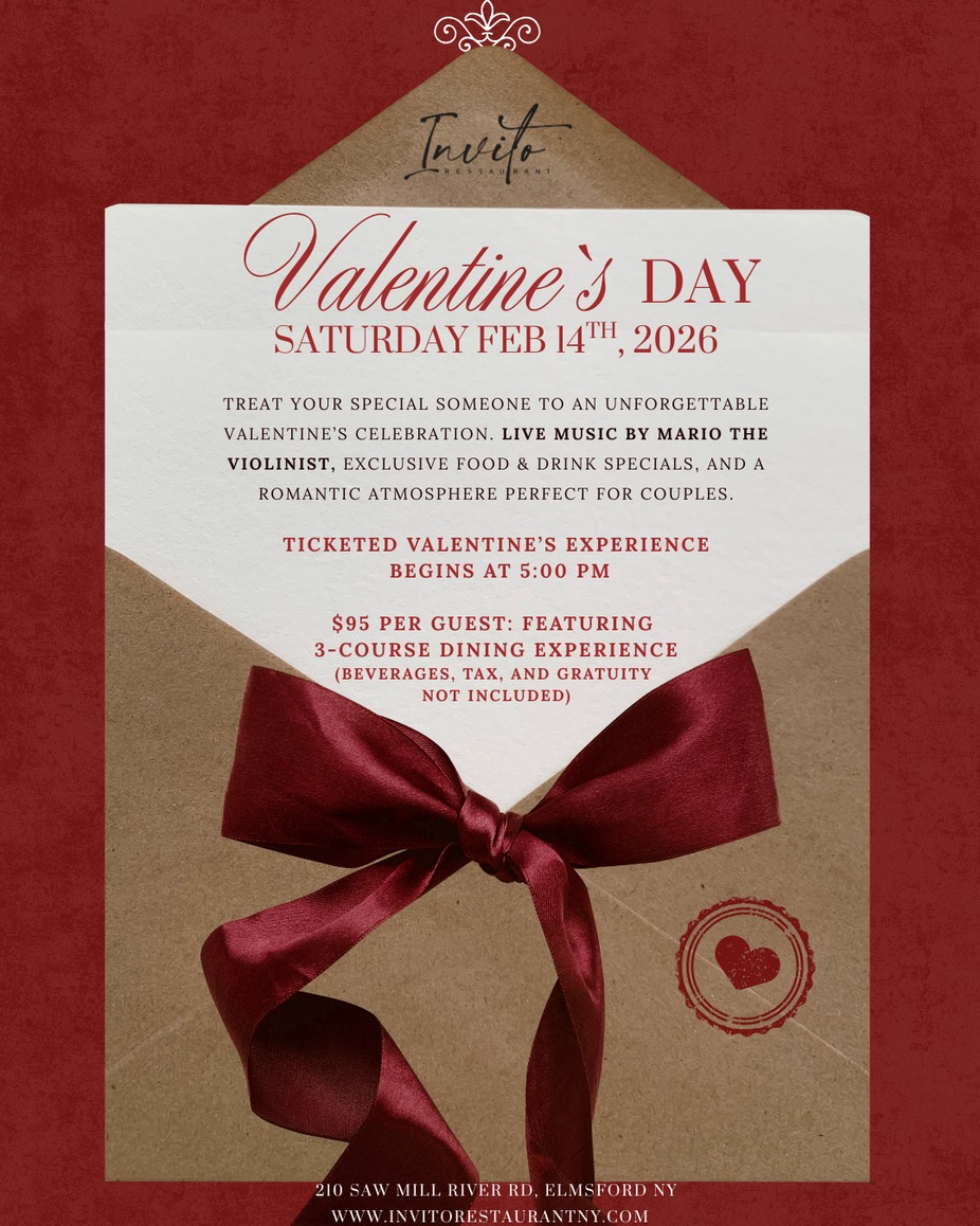 📍 Invito Restaurant 210 Saw Mill River Rd, Elmsford NY 10523 Limited seating available! treat your special someone to an unforgettable Valentine’s celebration